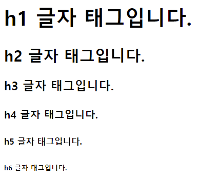 <h1>h1 글자 태그입니다.</h1>