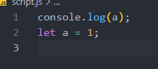 *TDZ란 : Temporal Dead Zone 변수가 선언되고 초기화가 이루어지기 전까지의 구간을 의미합니다. TDZ에서는 변수 선언이전이나 초기화 전의 변수를 사용하는것을 허용하지않는 범위입니다.