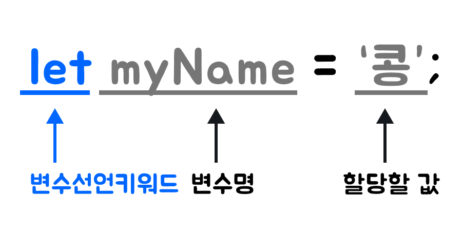 변수선언키워드 변수명을 쓰고 = (등호) 뒤에 값을 넣어주면됩니다.
