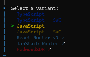 원하는 프레임워크 선택하면됩니다. react 프로젝트를 생성할거라 React를 선택했습니다.