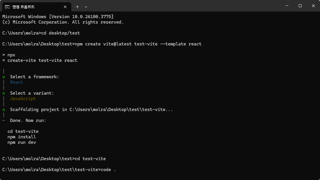 npm create vite@latest 프로젝트명 --template react