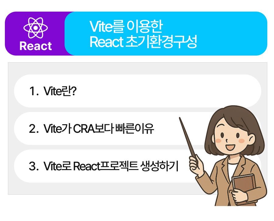 오늘은 빌드도구중 하나인 Vite로 React 개발환경을 구성하는 방법에 대해 알아보려고합니다.